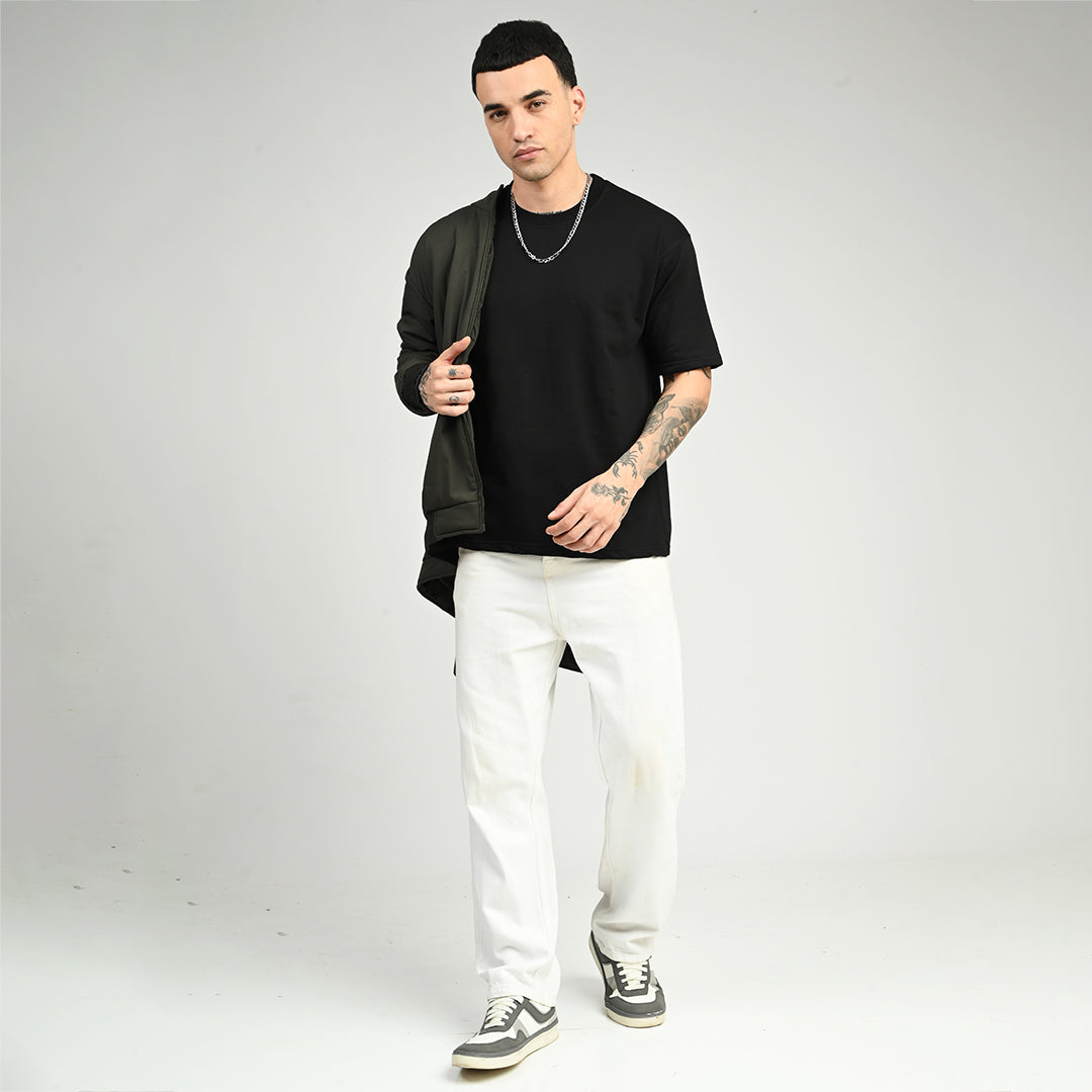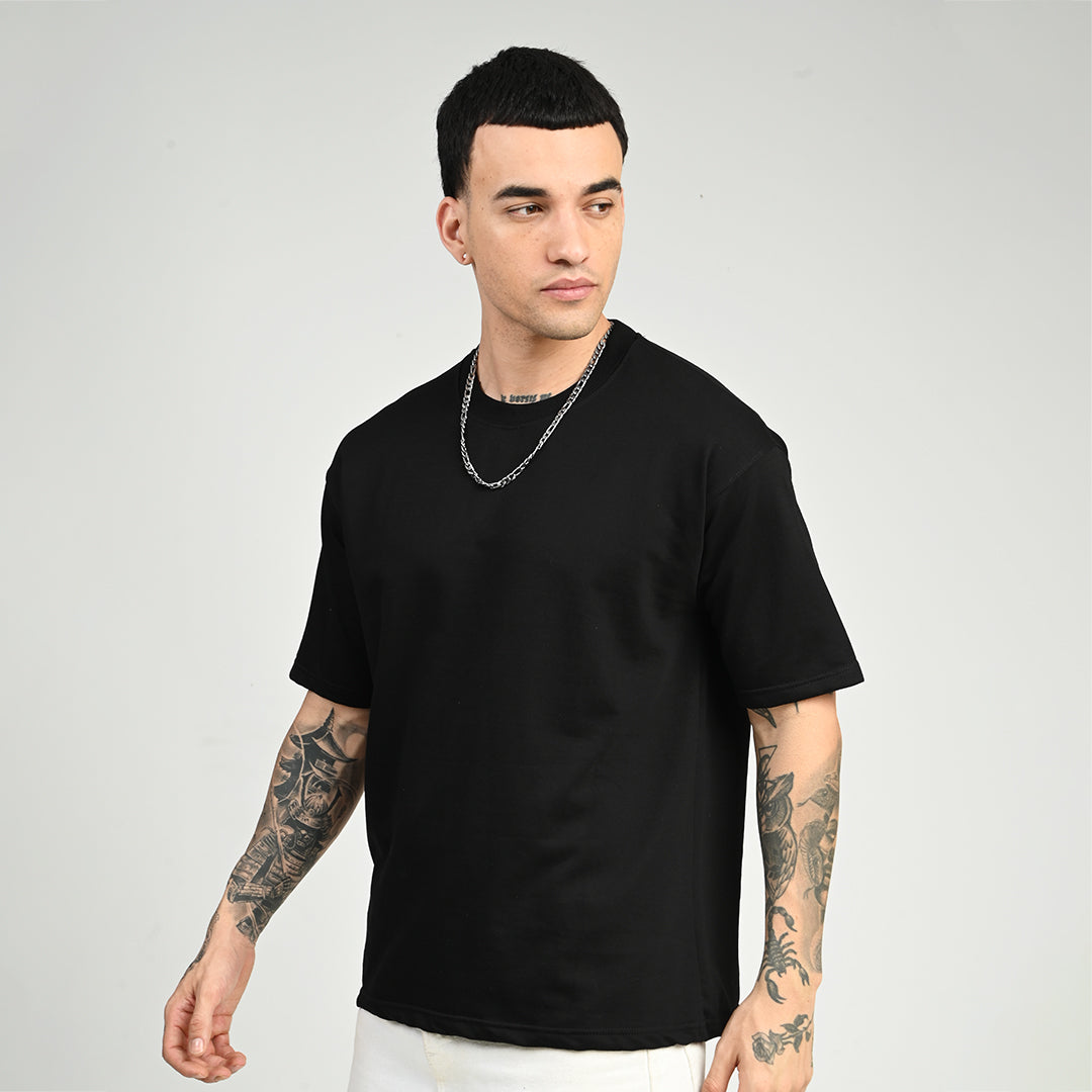 The classic black shade adds timeless versatility to your wardrobe, allowing you to style it effortlessly with joggers, cargos, denim, or shorts. Its oversized silhouette with drop shoulders creates a relaxed, modern fit that blends laid-back comfort with on-trend streetwear appeal.