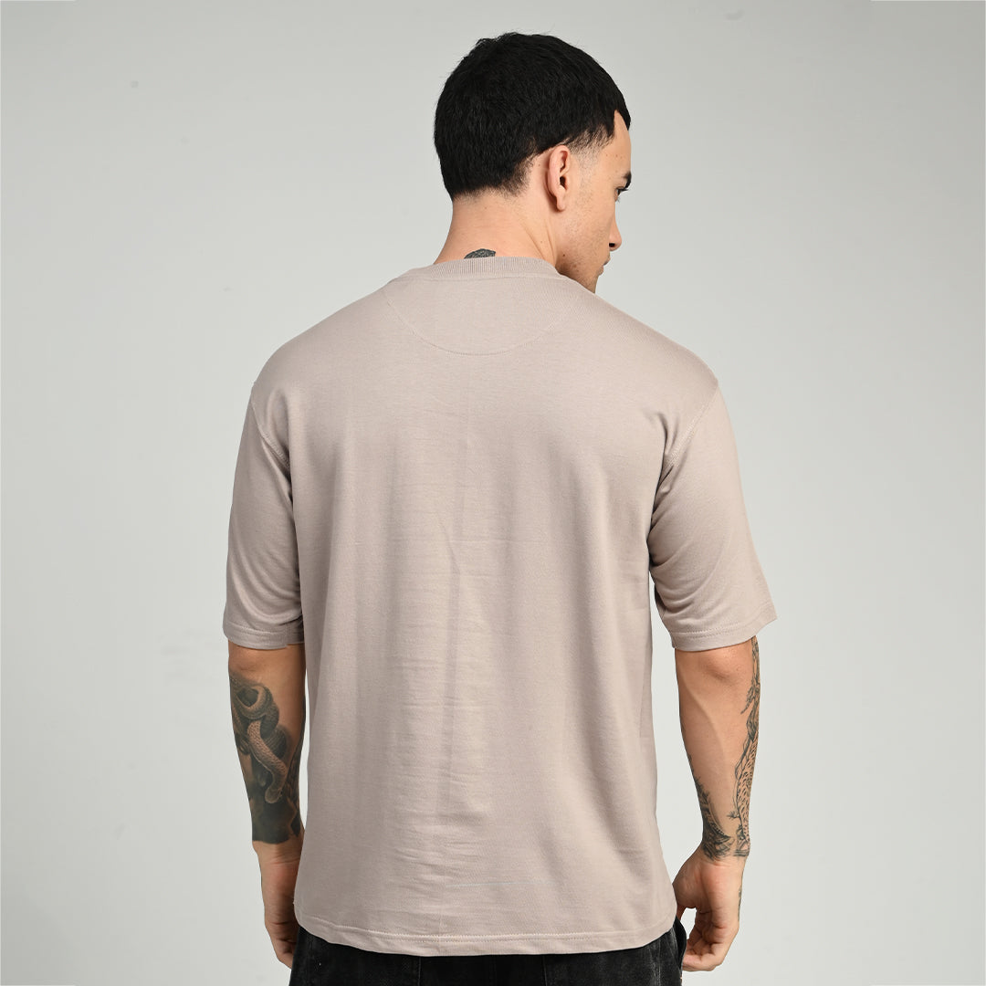 The smoky beige color adds a refined, versatile touch to your look, pairing effortlessly with denim, joggers, cargos, or shorts. Its oversized silhouette with drop shoulders delivers a relaxed fit that combines comfort with contemporary fashion, making it ideal for all-day wear.
